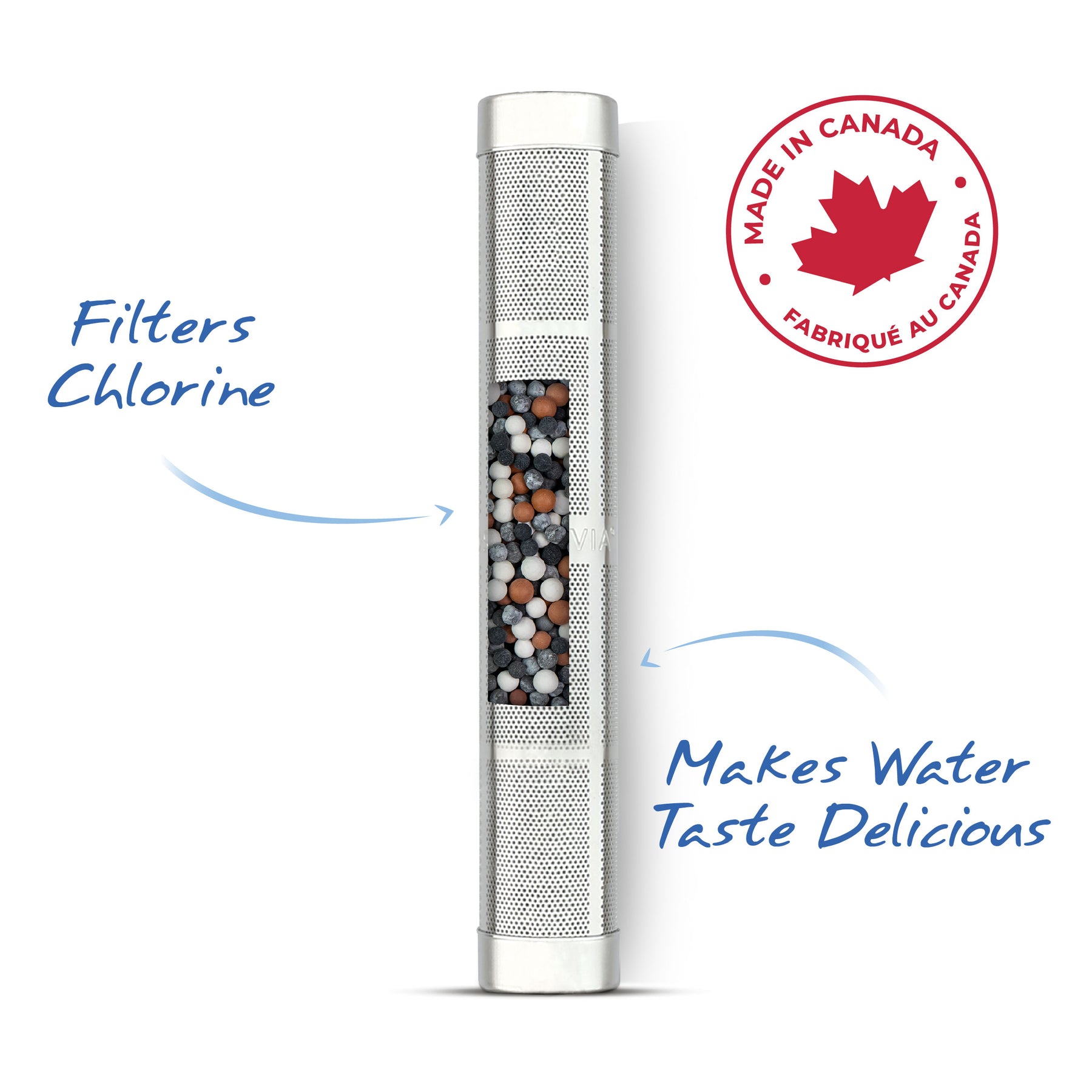 The Water Bottle Filter is a portable solution for clean, mineralized water. It reduces 99% of chlorine and adds back essential minerals to your water.
