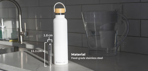 The Santevia Water Bottle Filter removes chlorine, is made in Canada, and makes water taste delicious