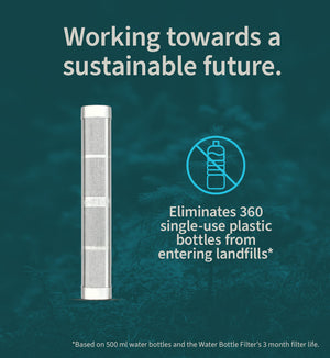 *Based on 500 ml water bottles and the Water Bottle Filter’s 3 month filter life, water bottles are sold separately.